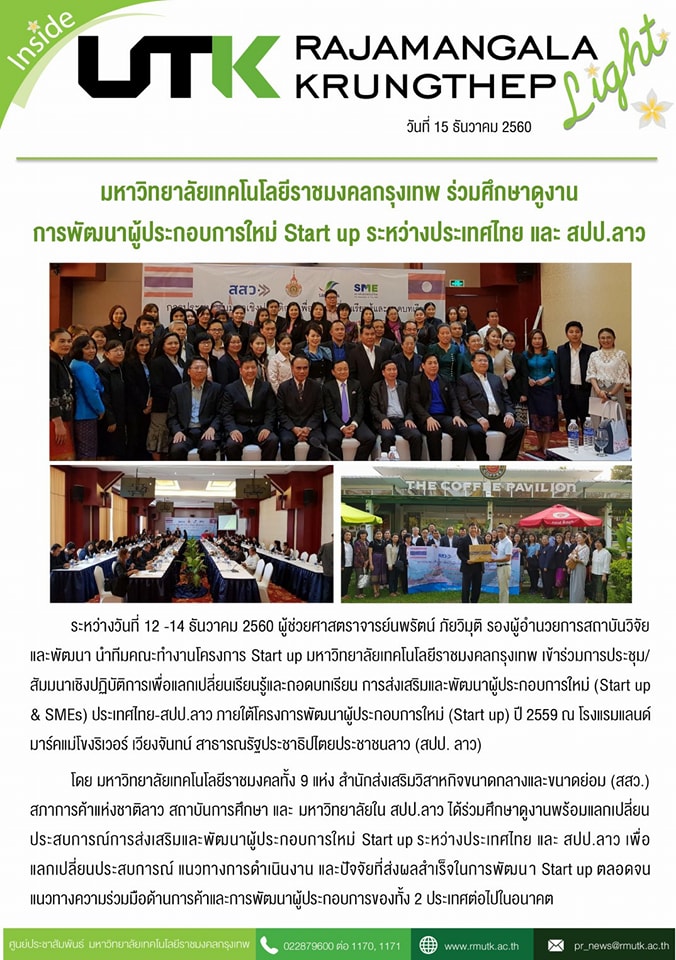 Title: มหาวิทยาลัยเทคโนโลยีราชมงคลกรุงเทพ ร่วมศึกษาดูงานการพัฒนาผู้ประกอบการใหม่ Star up ระหว่างประเทศไทย และสปป.ลาว