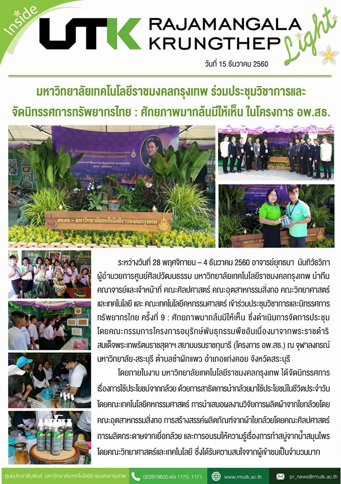 Title: | มหาวิทยาลัยเทคโนโลยีราชมงคลกรุงเทพ ร่วมประชุมวิชาการจัดนิทรรศการทรัพยากรไทย ศักยภาพมากล้นมีให้เห็นในโครงการ อพ.สธ. |