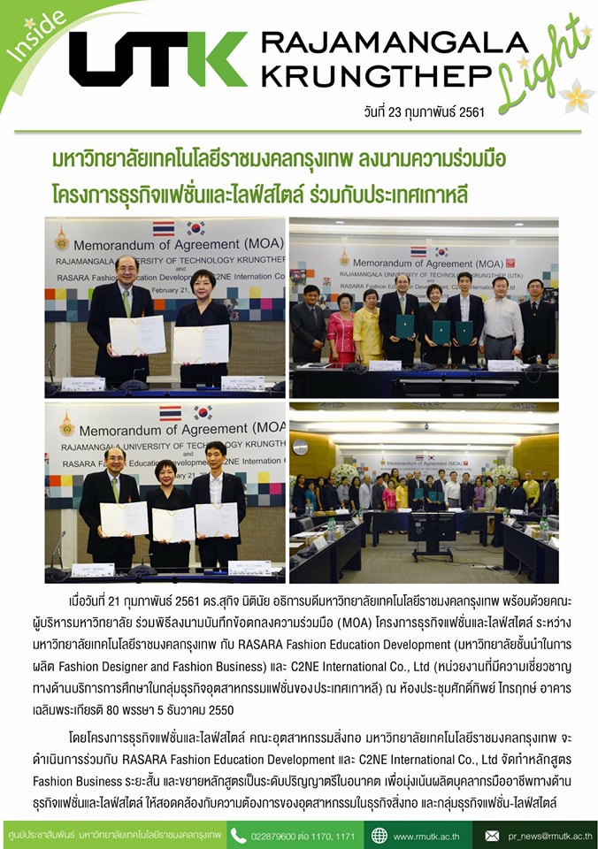 Title: | มหาวิทยาลัยเทคโนโลยีราชมงคลกรุงเทพ ลงนามควมร่วมมือโครงการธุรกิจแฟชั่น และไลฟ์สไตล์ ร่วมกับประเทศเกาหลี |
