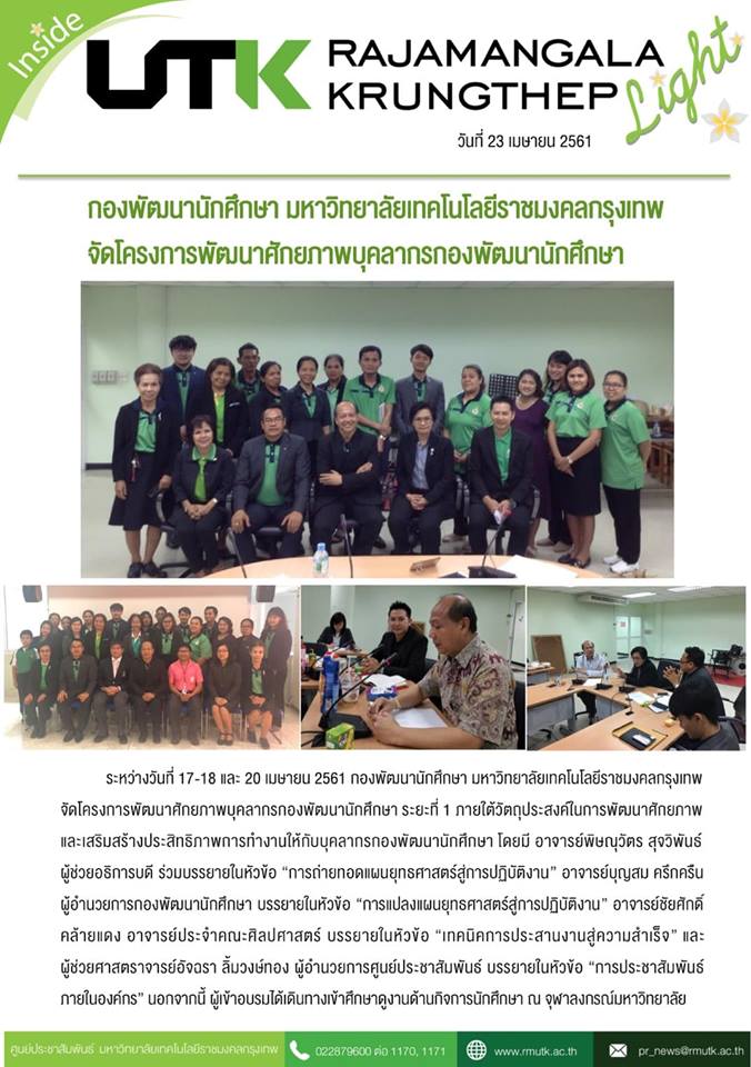 Title: | กองพัฒนานักศึกษา จัดโครงการพัฒนาศักยภาพบุคลากรกองพัฒนานักศึกษา |