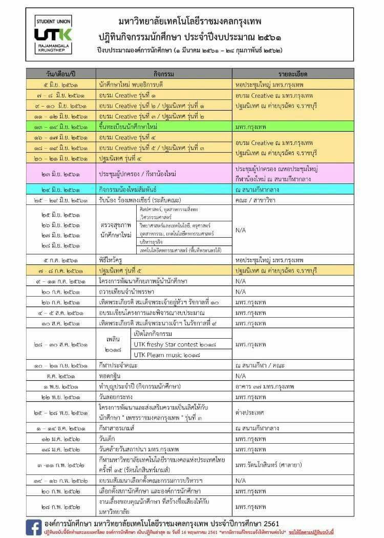 Title: | ปฏิทินกิจกรรมนักศึกษา ประจำปีงบประมาณ 2561 |