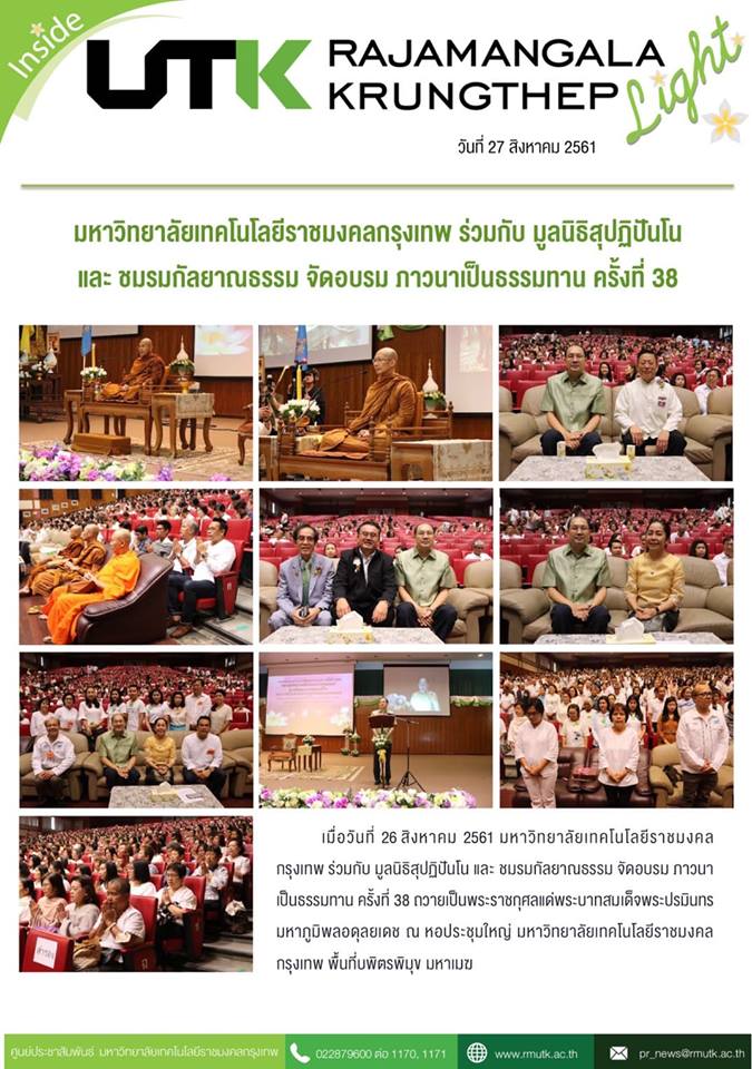 Title: | มหาวิทยาลัยเทคโนโลยีราชมงคลกรุงเทพร่วมกับมูลนิธิสุปฏิปันโนและชมรมกัลยาธรรม จัดอบรม ภาวนาเป็นธรรมทาน ครั้งที่ 38 |