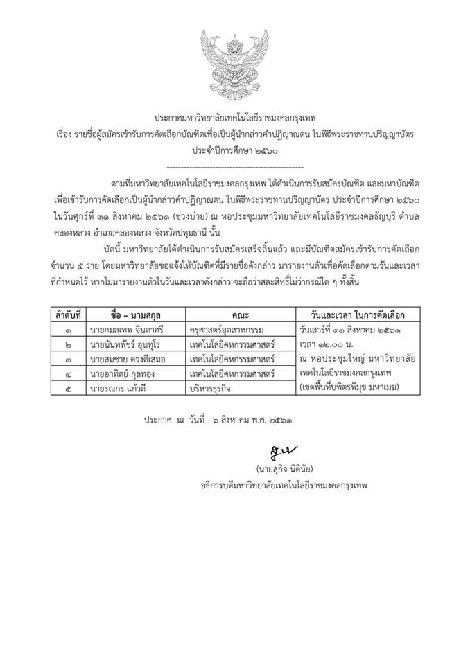 Title: | รายชื่อผู้สมัครเข้ารับการคัดเลือกบัณฑิต เพื่อเป็นผู้นำกล่าวคำปฎิญาณตน ในพิธีพระราชทานปริญญาบัตร ประจำปีการศึกษา ๒๕๖๐ |