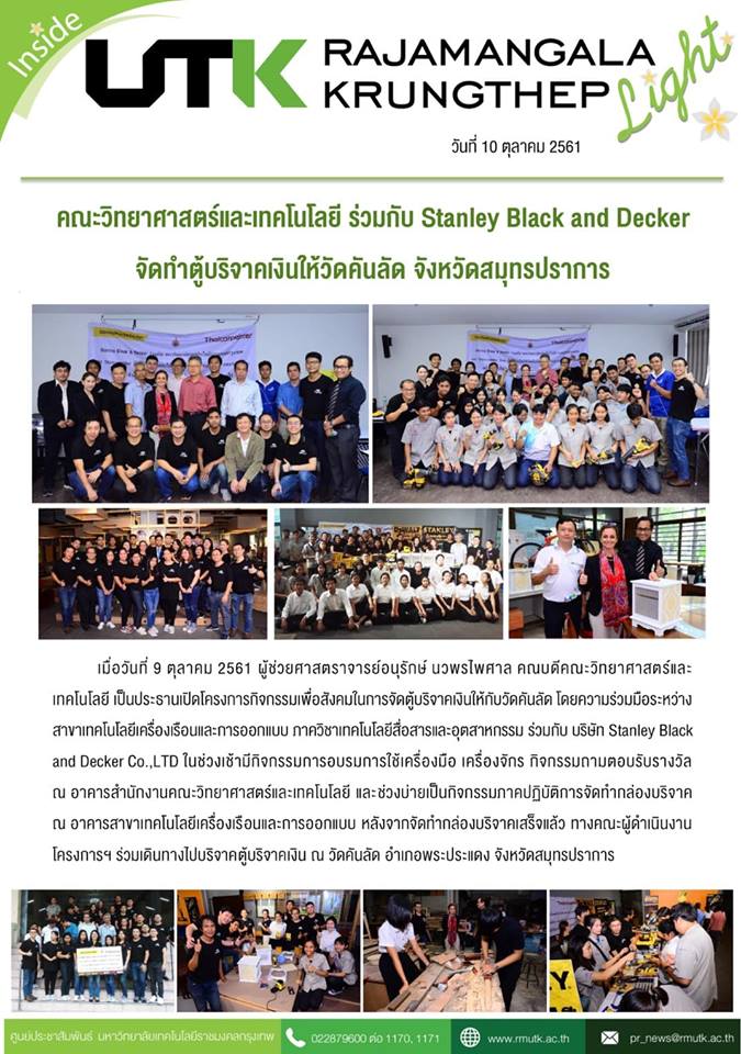 Title: | คณะวิทยาศาสตร์และเทคโนโลยี ร่วมกับ Stanley Black and Decker จัดทำตู้บริจาคเงินให้วัดคันลัด จังหวัดสมุทรปราการ |