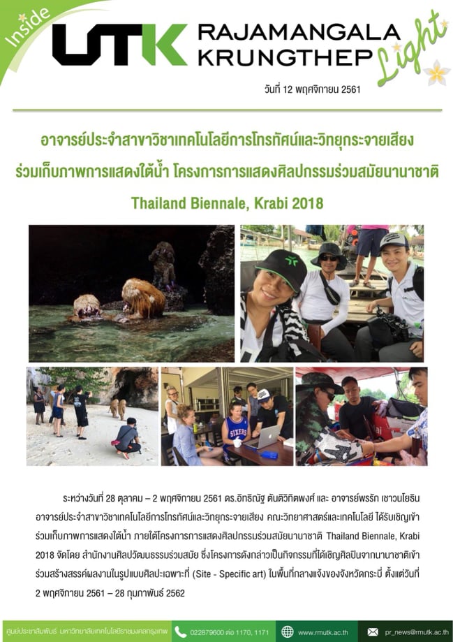 Title: อาจารย์ประจำสาขาวิชาเทคโนโลยีการโทรทัศน์และวิทยุกระจายเสียงร่วมเก็บภาพการแสดงใต้น้ำ โครงการแสดงศิลปกรรมร่วมสมัยนานาชาติ Thailand Biennale, Krabi 2018