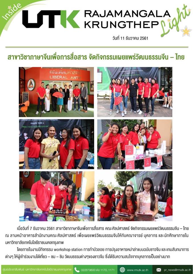 Title: สาขาวิชาภาษาจีนเพื่อการสื่อสาร จัดกิจกรรมเผยแพร่วัฒนธรรมจีน - ไทย