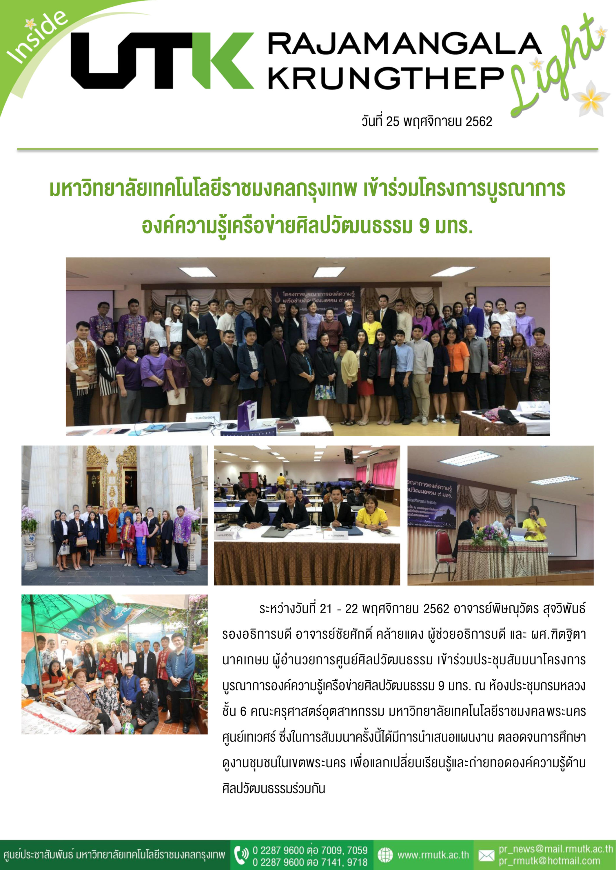 Title: มหาวิทยาลัยเทคโนโลยีราชมงคลกรุงเทพ เข้าร่วมโรงการบูรณาการองค์ความรู้เครือข่ายศิลปวัฒนธรรม 9 ราชมงคล
