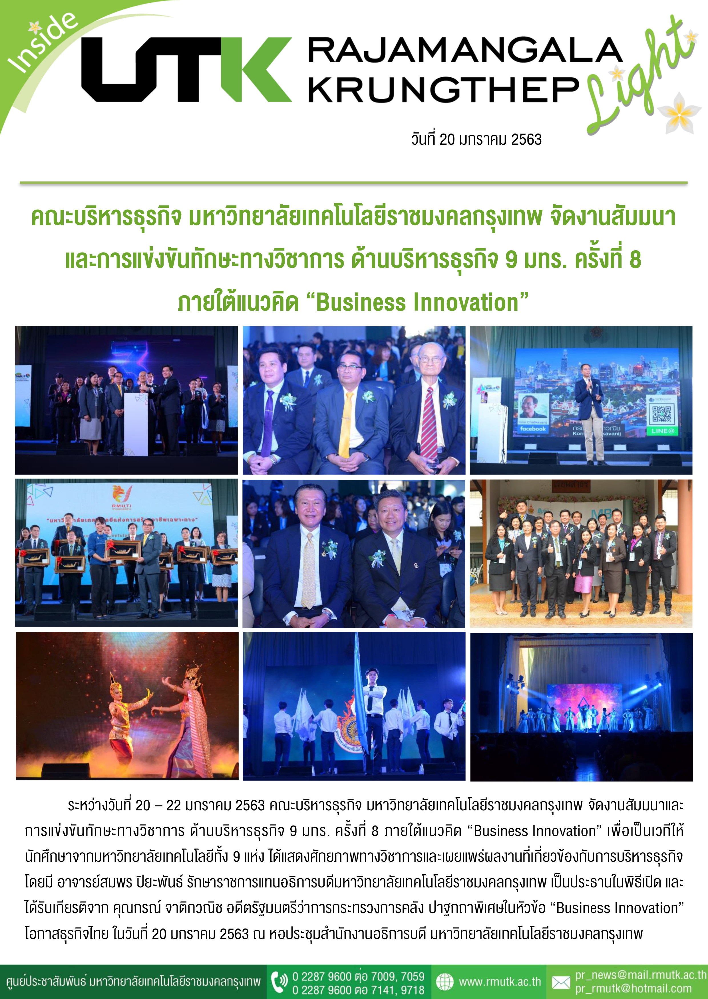 Keywords: การแข่งขันทักษะทางวิชาการ ด้านบริหารธุรกิจ 9 มทร. ครั้งที่ 8