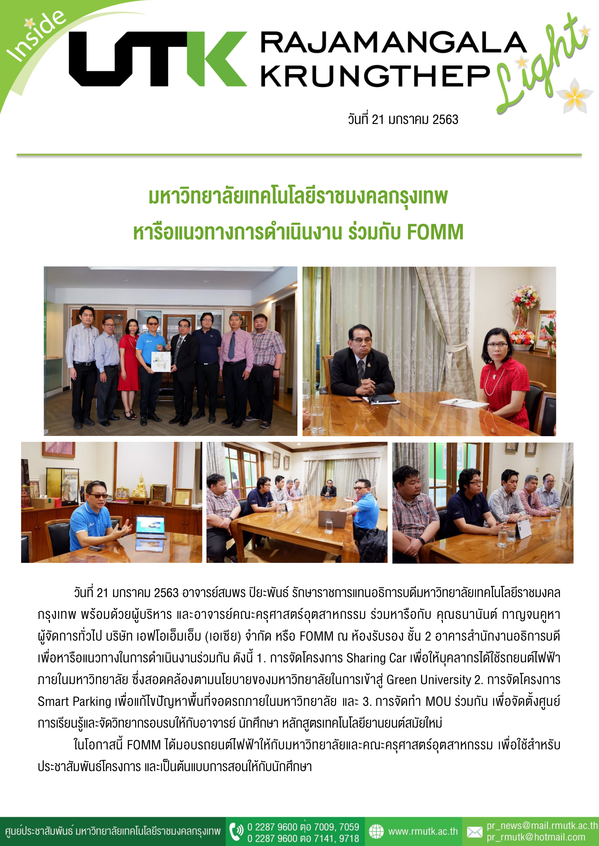 Title: | มหาวิทยาลัยเทคโนโลยีราชมงคลกรุงเทพ หารือแนวทางการดำเนินงานร่วมกับ FOMM |