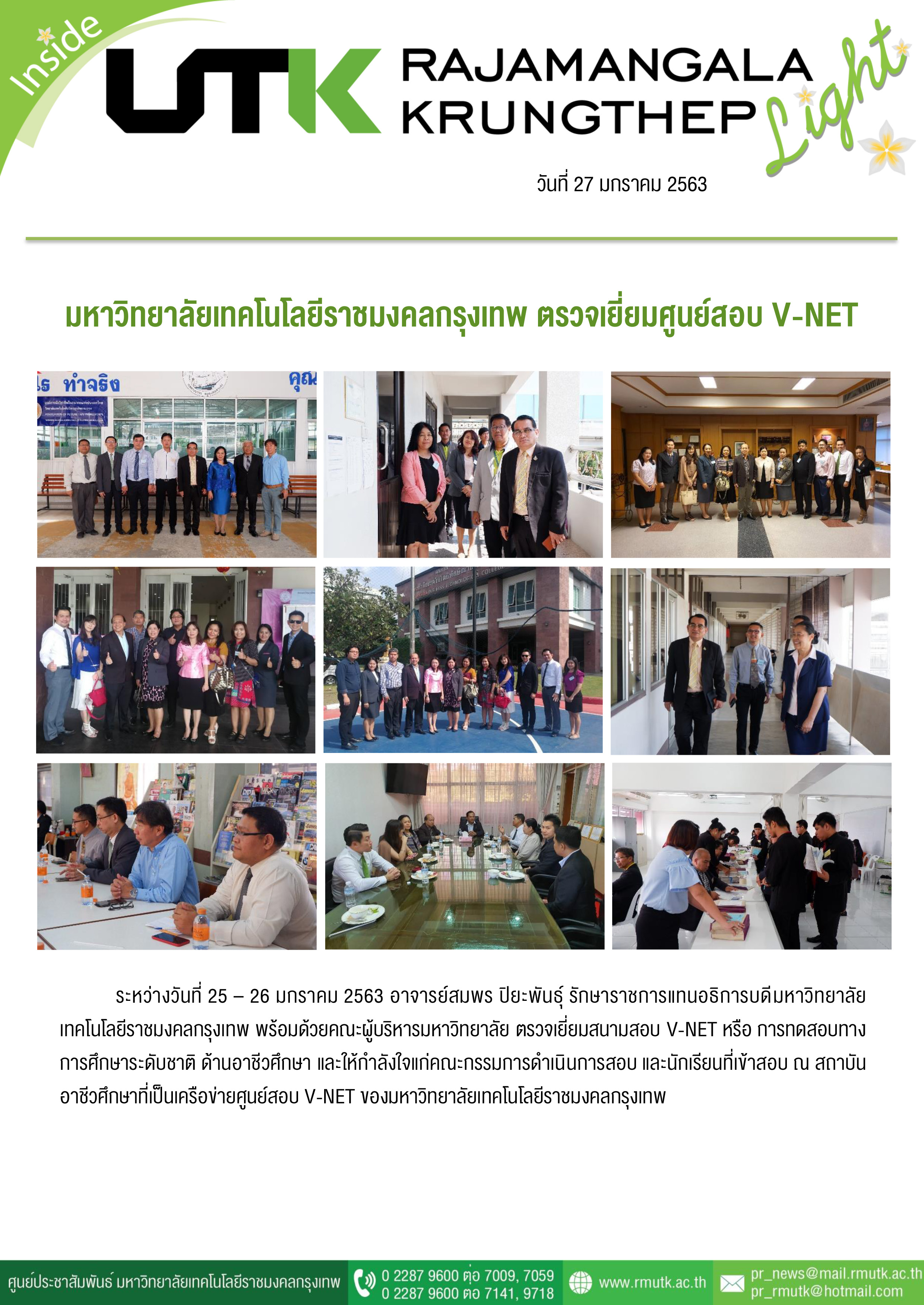 Title: | มหาวิทยาลัยเทคโนโลยีราชมงคลกรุงเทพ ตรวจเยี่ยมศูนย์สอบ V-NET |