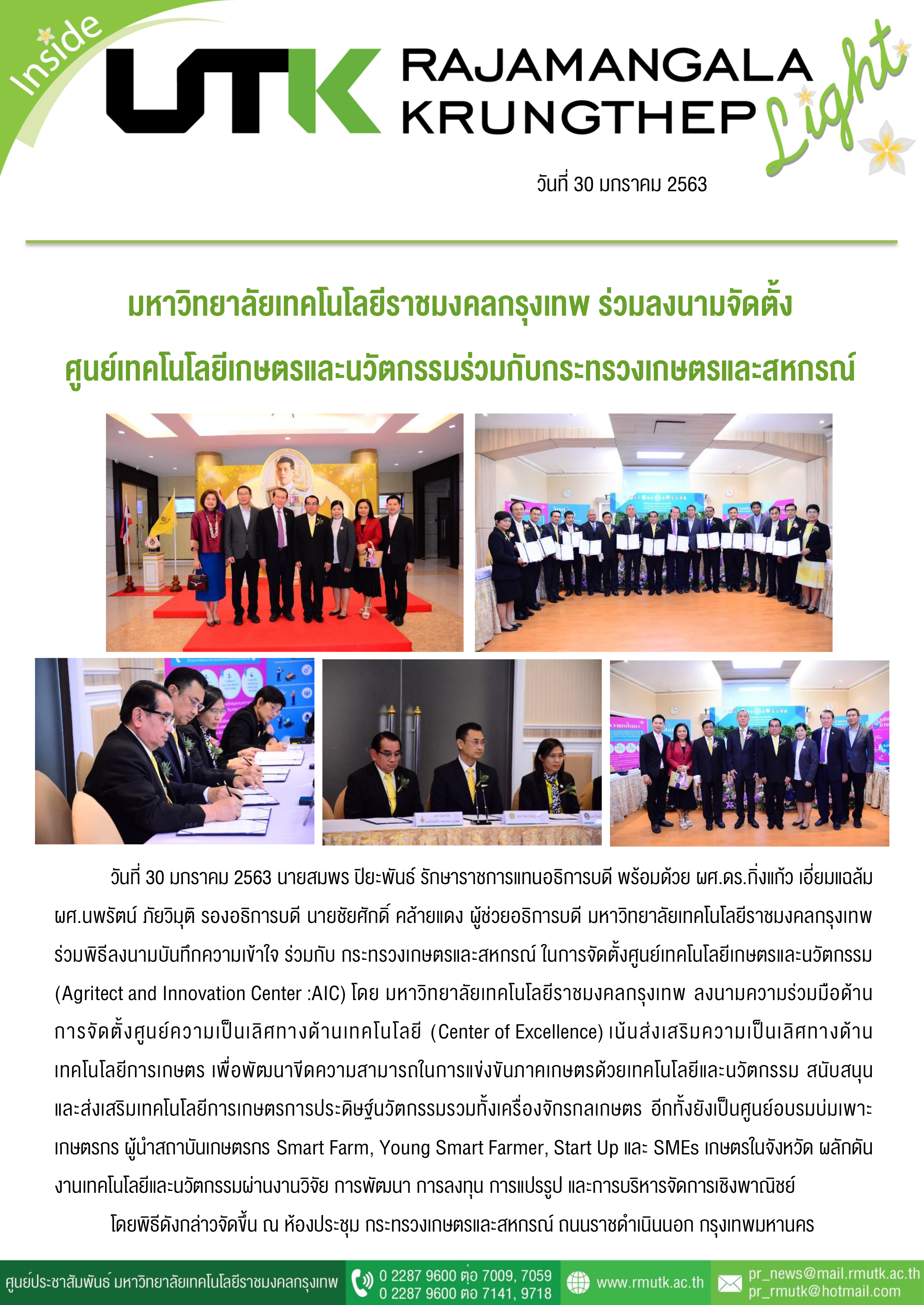 Title: มหาวิทยาลัยเทคโนโลยีราชมงคลกรุงเทพ ร่วมลงนามจัดตั้งศูนย์เทคโนโลยีเกตรและนวัตกรรมร่วมกับกระทรวงเกษตรและสหกรณ์