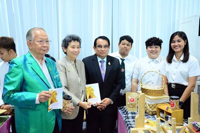 Abstract: | การศึกษา มทร.กรุงเทพ แสดงผลงาน สิ่งประดิษฐ์ และนวิจัยเพื่อการเรียนรู้ วันอาทิตย์ ที่ 15 มีนาคม พ.ศ. 2563, 08.23 น. tags : มหาวิทยาลัยเทคโนโลยีราชมงคลกรุงเทพ ติดตามข่าวด่วน กระแสข่าวบน Facebook คลิกที่นี่ มทร.กรุงเทพ แสดงผลงาน สิ่งประดิษฐ์ และนวิจัยเพื่อการเรียนรู้ มหาวิทยาลัยเทคโนโลยีราชมงคลกรุงเทพ จัดโครงการนิทรรศการการแสดงผลงานวิจัย สิ่งประดิษฐ์ และการวิจัยเพื่อการเรียนรู้ ประจำปีการศึกษา 2562 เพื่อเป็นเวทีให้นักศึกษาคณะเทคโนโลยีคหกรรมศาสตร์ที่กำลังจะสำเร็จการศึกษา ได้เผยแพร่องค์ความรู้และทักษะทางวิชาการผ่านผลงานวิจัย จำนวน 133 เรื่อง โดยมี นายสมพร ปิยะพันธ์ รักษาราชการแทนอธิการบดี เป็นประธานเปิดโครงการ ณ คณะเทคโนโลยีคหกรรมศาตร์ มหาวิทยาลัยเทคโนโลยีราชมงคลกรุงเทพ พื้นที่พระนครใต้ นางสาวณภัทร ยศยิ่งยง คณบดีคณะเทคโนโลยีคหกรรมศาสตร์ มหาวิทยาลัยเทคโนโลยีราชมงคลกรุงเทพ กล่าวถึงการจัดโครงการนิทรรศการการแสดงผลงานวิจัย สิ่งประดิษฐ์ และการวิจัยเพื่อการเรียนรู้ ประจำปีการศึกษา 2562 ว่า เป็นโครงการที่จัดขึ้นเพื่อส่งเสริมและพัฒนาศักยภาพของนักศึกษา ใน 7 สาขาวิชาที่คณะมีการจัดการเรียนการสอน ได้แก่ สาขาวิชาวิทยาศาสตร์และเทคโนโลยีการอาหาร สาขาวิชาอาหารและโภชนาการ สาขาวิชาการพัฒนาผลิตภัณฑ์อาหาร สาขาวิชาธุรกิจอาหาร สาขาวิชาเทคโนโลยีเสื้อผ้าและแพตเทิร์น สาขาวิชาการออกแบบแฟชั่น และสาขาวิชาคหกรรมศาสตร์ศึกษา ให้ได้บูรณาการความรู้ที่ได้เรียนมาสร้างสรรค์ผลงานวิจัย และสิ่งประดิษฐ์ ภายใต้โจทย์การแก้ไขปัญหาที่เกิดขึ้นของสถานประกอบการที่นักศึกษาได้ฝึกงานหรือสภาวการณ์ปัจจุบัน การลดต้นทุน การเพิ่มมูลค่าให้กับผลิตภัณฑ์ หรือการวิจัยเพื่อแก้ไขปัญหาที่เกิดขึ้นในชั้นเรียน อาทิ การพัฒนาเม็ดไข่มุกรสสมุนไพร การพัฒนาผลิตภัณฑ์ปั้นขลิบเสริมแคลเซียมจากก้างปลาแซลมอน การพัฒนาผลิตภัณฑ์ขนมขบเคี้ยวจากข้าวฮางงอกหอมมะลิ 105 ผลิตภัณฑ์ไดฟุกุสีชมพูบานเย็นจากดอกคุณนายตื่นสาย ผลิตภัณฑ์มีทบอลมังสวิรัติ การพัฒนาผลิตภัณฑ์ต็อกบกกีจากข้าวเหนียวดำ การแสดงแฟชั่นโชว์จากนักศึกษา ฯลฯ ด้าน นางสาวพิมพร สุขกาญจน นางสาวอนิลตา รวมธรรม นางสาววัลลภา เกตุสุวรรณ นางสาวปิยะธิดา เริญไธสง และนางสาวประภาพรรณ แจ้งกระจ่าง นักศึกษาสาขาวิชาธุรกิจอาหาร เจ้าของผลงานวิจัยผลิตภัณฑ์ขนมกลีบลำดวนเสริมใยอาหารจากผงกากมะพร้าวเหลือใช้ เล่าว่า การพัฒนาผลิตภัณฑ์นี้เกิดจากแนวคิดในการนำวัตถุดิบที่เหลือใช้ในครัวมาเพิ่มมูลค่า อย่างเช่น กากมะพร้าวที่