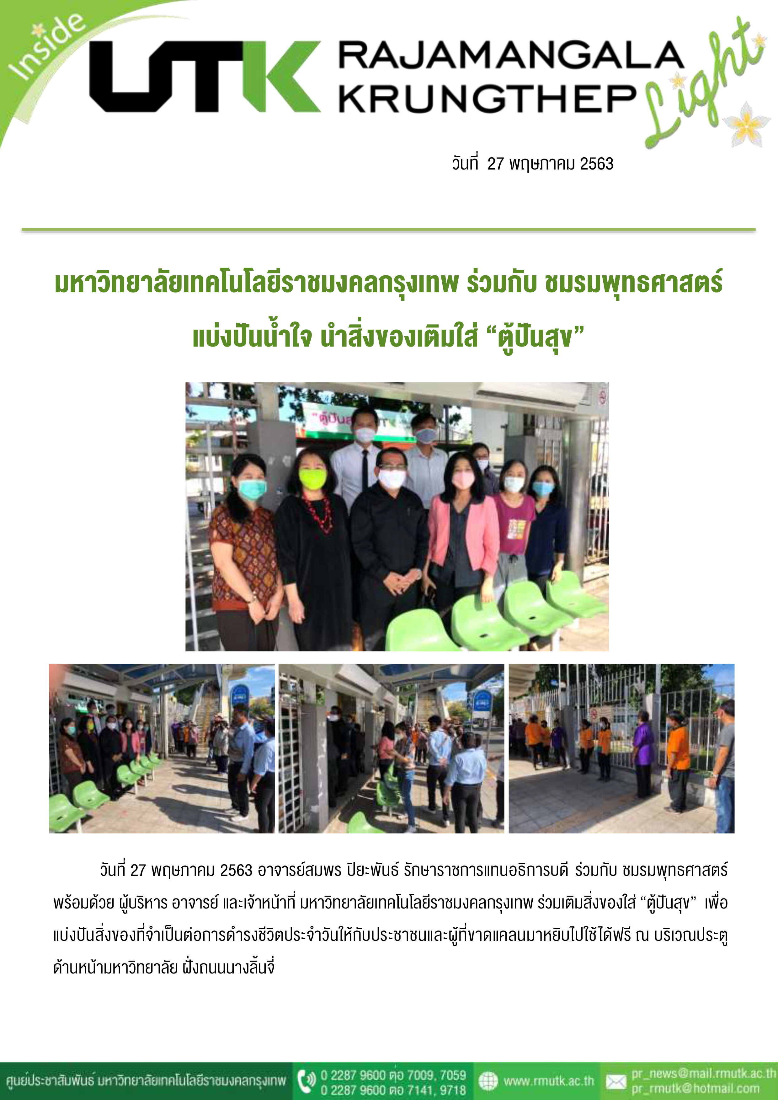 Title: | ราชมงกคลกรุงเทพ ร่วมกับ ร่วมกับสภาอุตสาหกรรมฯ เติมสิ่งของใส่ "ตู้ปันสุข" ช่วยผู้เดือดร้อน |