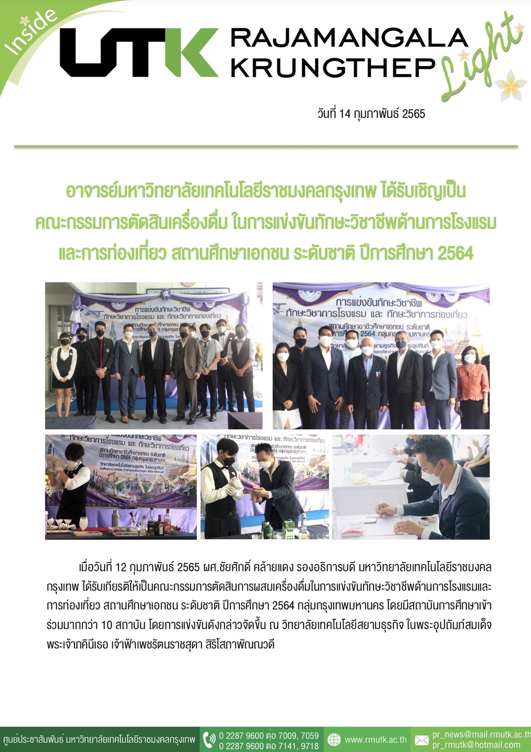 Abstract: | ขอแสดงความยินดีกับ คณะบริหารธุรกิจ ในโอกาสได้รับรางวัลจาก การแข่งขันโครงการสัมมนาและการเข่งขันทักษะด้านบริหารธุรกิจ 9 มทร. ระหว่างวันที่ 10-1 1 กุมภาพันธ์ 2565 คณาจารย์และนักศึกษาคณะบริหารธุรกิจ มหาวิทยาลัยเทคโนโลยีราชมงคล กรุงเทพ ได้เข้าร่วมโครงการสัมมนาและการแข่งขันทักษะด้านบริหารธุรกิจ 9 มทร. ครั้งที่ 9 ภายใต้แนวคิด Sufficiency Green Bi2 ธุรกิจสีเขียวตามศาสตร์พระราชา โดยการน้อมนำศาสตร์พระราชาเกี่ยวกับปรัชญาเศรษฐกิจพอเพียง รวมถึงการ นำทฤษฎีการพัฒนาเศรษฐกิจใหม่ BcG Model มาประยุกต์ใช้ให้เกิดประโยชน์สูงสุดทางด้านบริหารธุรกิจ โดยจัดการแข่งขัน ผ่านระบบออนไลน์ จำนวน 8 กิจกรรม โดย คณะบริหารธุรกิจ มหาวิทยาลัยเทคโนโลยีราชมงคลรัตนโกสินทร์ เป็นเจ้าภาพ ในการนี้ คณาจารย์และนักศึกษาคณะบริหารธุรกิจ มหาวิทยาลัยเทคโนโลยีราชมงคลกรุงเทพ ได้รับรางวัลต่าง ๆ ดังต่อไปนี้ 1. กิจกรรมที่ 2 การผลิตสื่อ ได้รับรางวัลรองชนะเลิศอันดับ 2 2. กิจกรรมที่ 1 การประกวดเขียนแผนธุรกิจ ได้รับรางวัลชมเชย 3. กิจกรรมที่ 6 การประกวดแนวปฏิบัติที่ดีของอาจารย์ในการจัดการเรียนการสอนสู่ความเป็นเลิศ (The Best Practice) ประเภทการจัดการเรียนการสอน ที่มีการบูรณาการกับงานวิจัย โดย อาจารย์อธิยุ ต ทัตตมนัส ได้รับ รางวัลชมเชย กิจกรรมที่ 7 การแข่งขันด้าน E-Sports ได้รับรางวัลชมเชย |